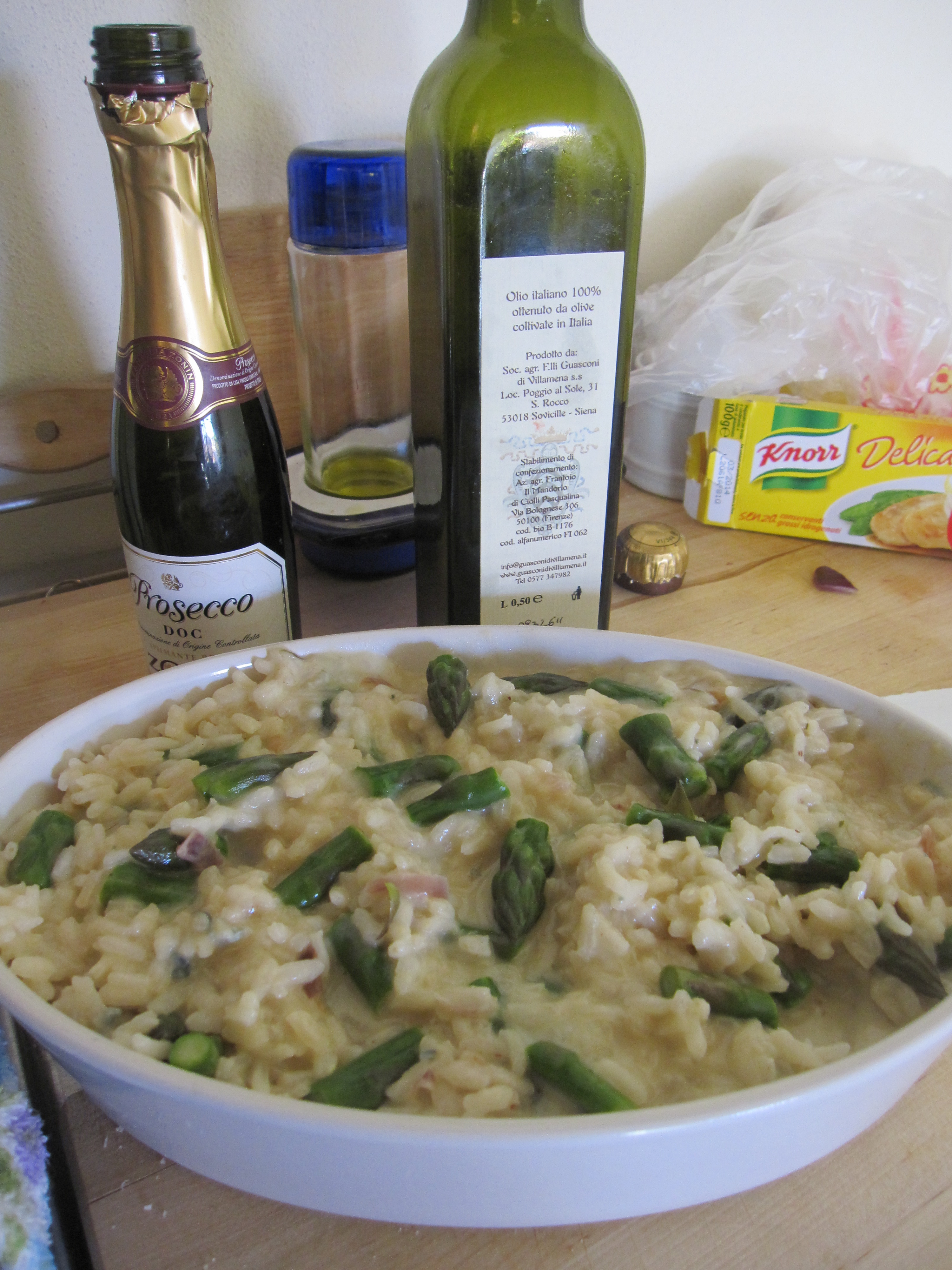 Sometimes we make dinner at home, too. Last week I made asparagus and gorgonzola risotto.
