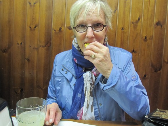 For lunch we had Torta di Ceci. Yes! “Ceci” is another way to say “garbanzo beans”. The Torta is thin like pita bread, and made with ceci flour, then filled with mushed-up cecis!